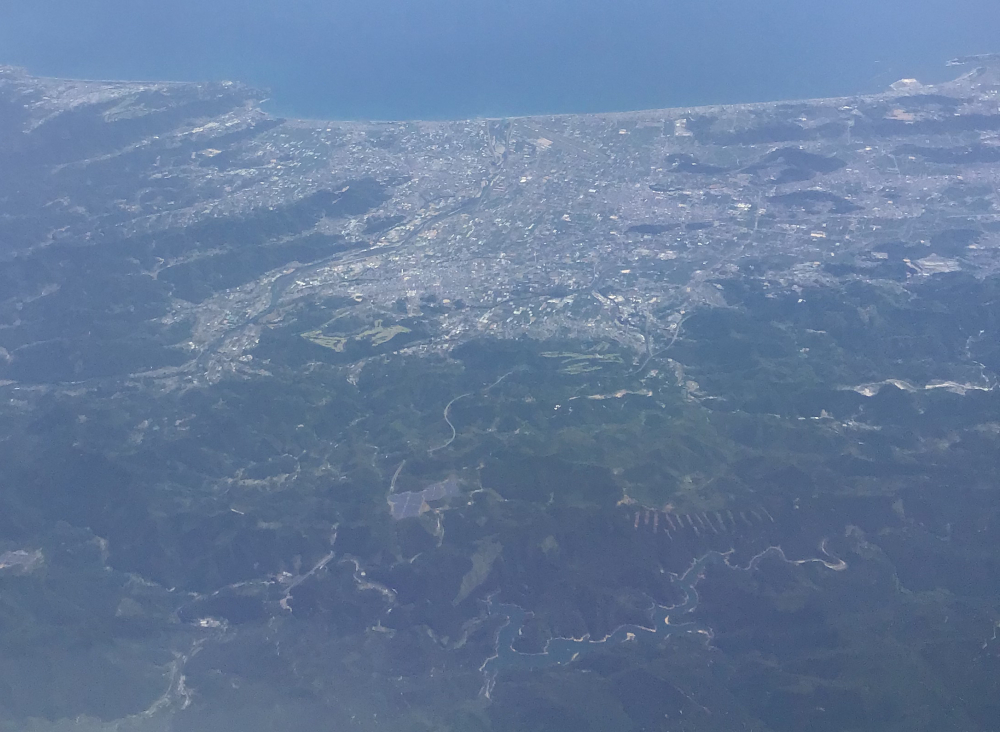 ・帰りの飛行機からは諫早湾と島原半島と原城跡の位置がさすがによく分かった